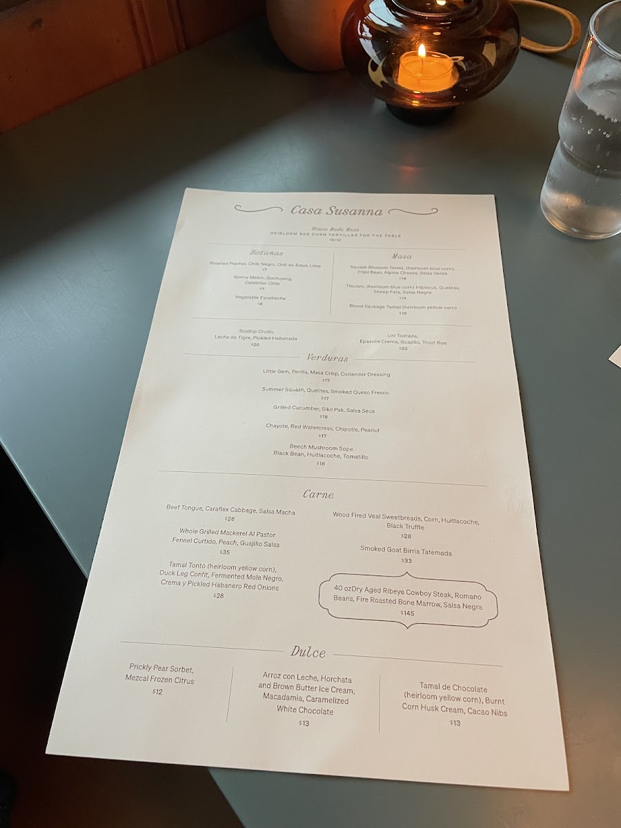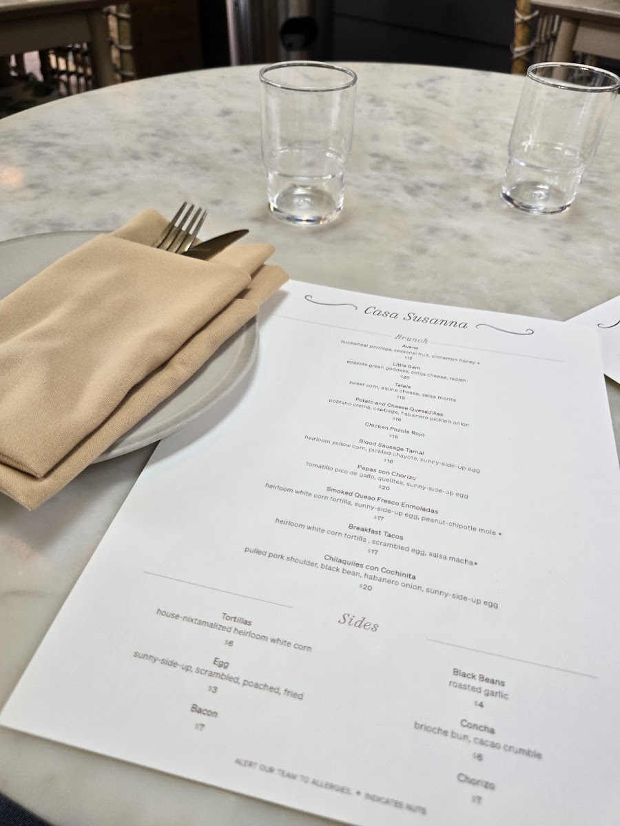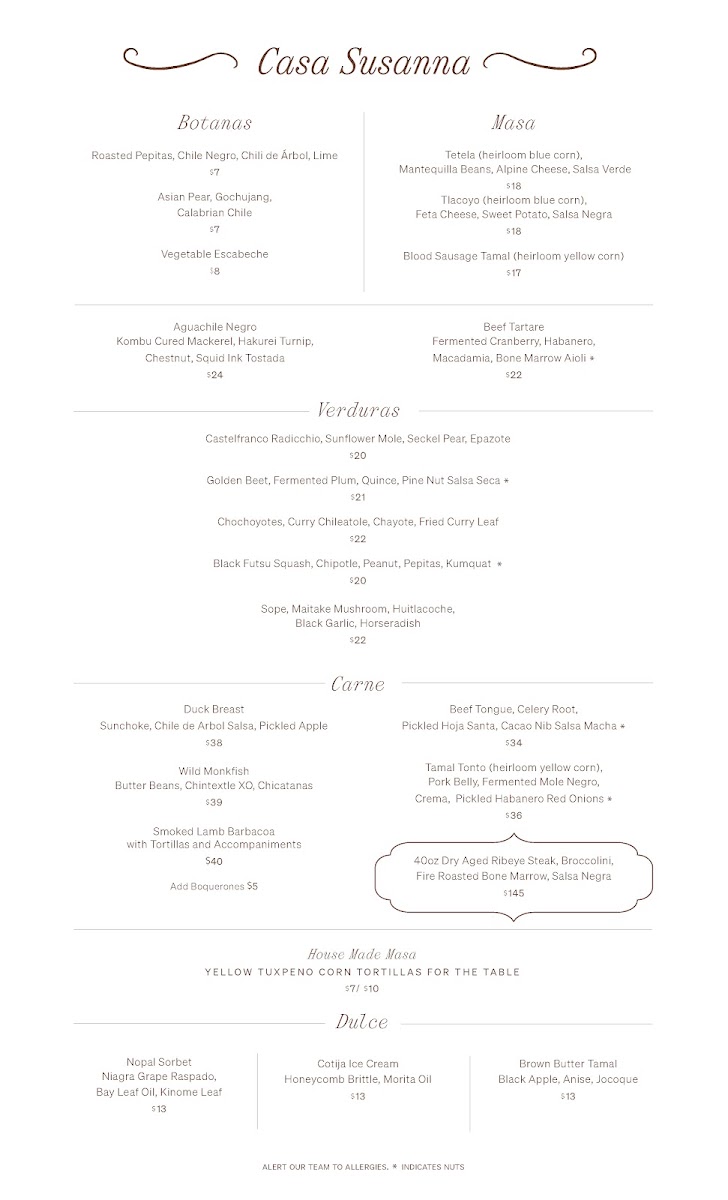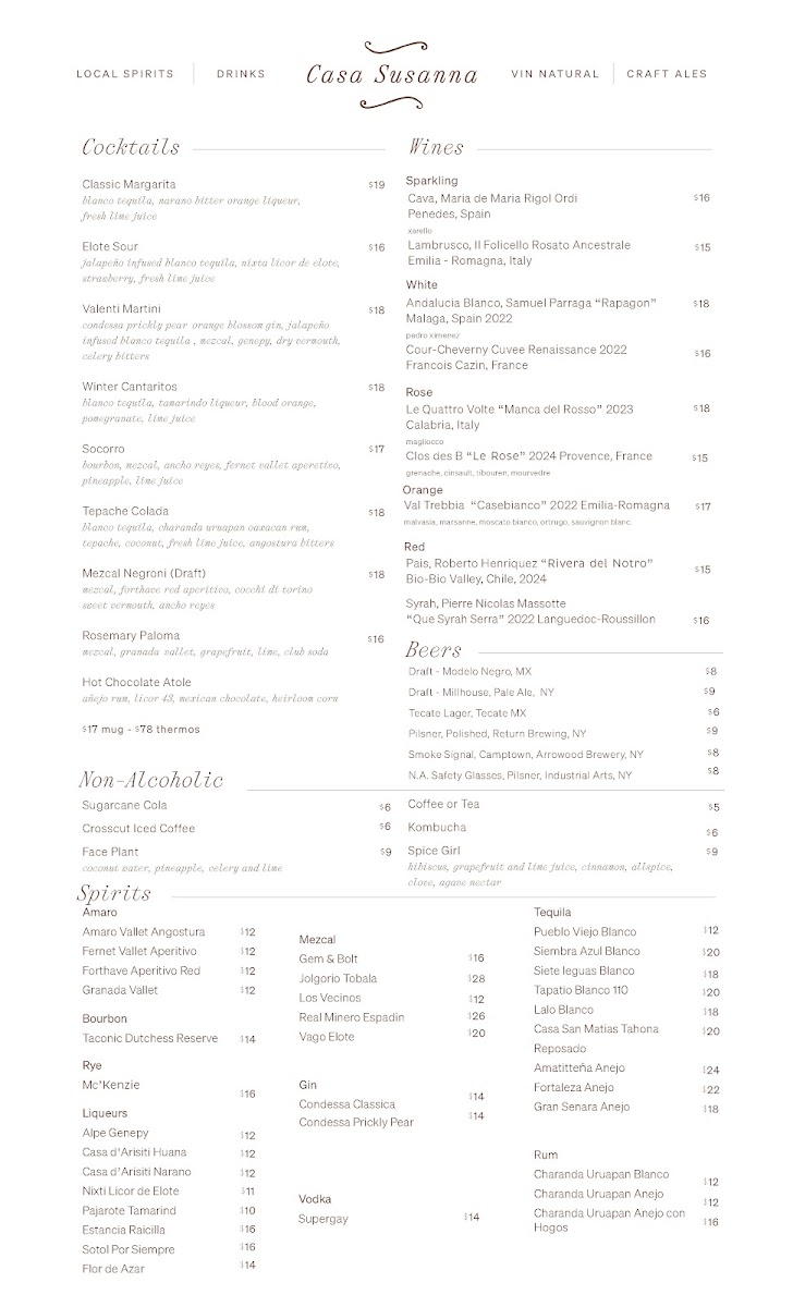 Casa Susanna Menu