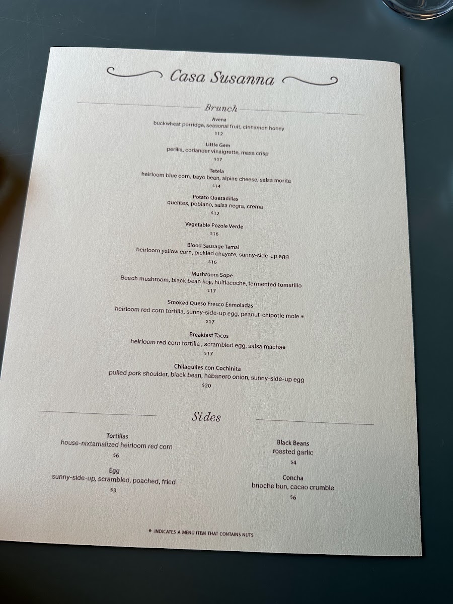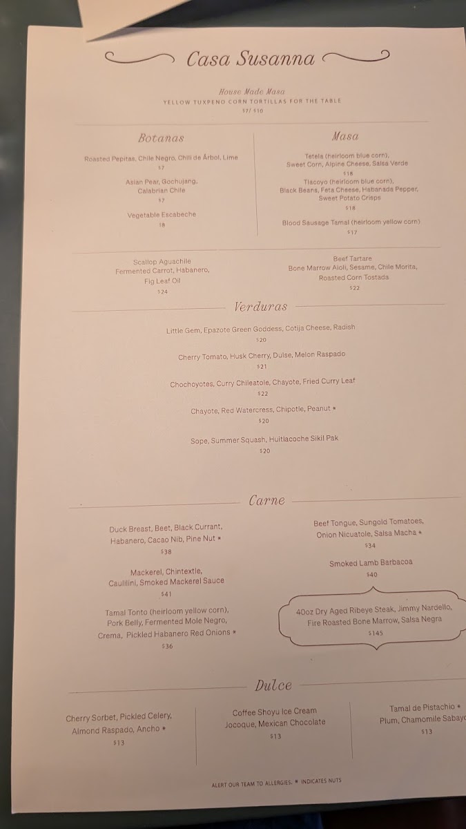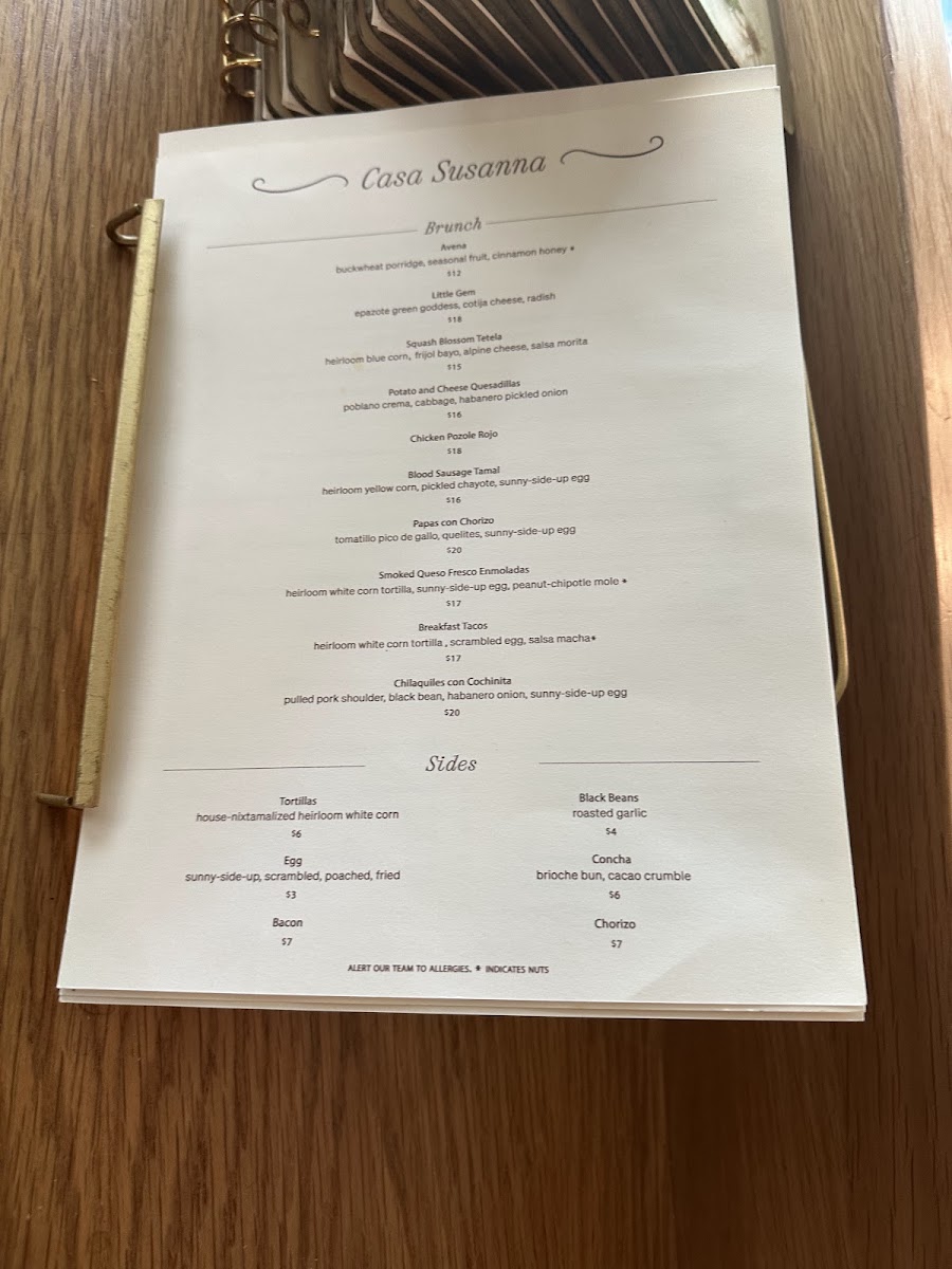 Casa Susanna Menu